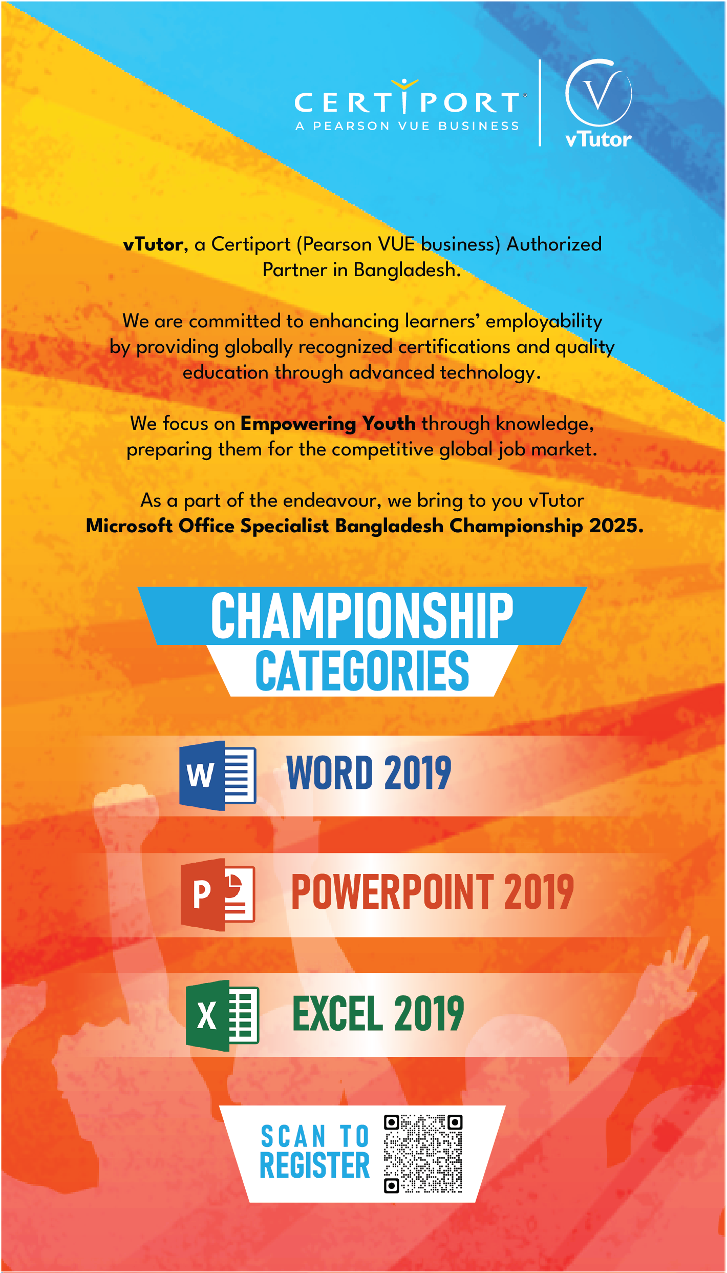 - The top scorer in each category will be crowned as the Bangladesh National Champion and qualify for the Microsoft Office Specialist World Championship 2025 (USA).