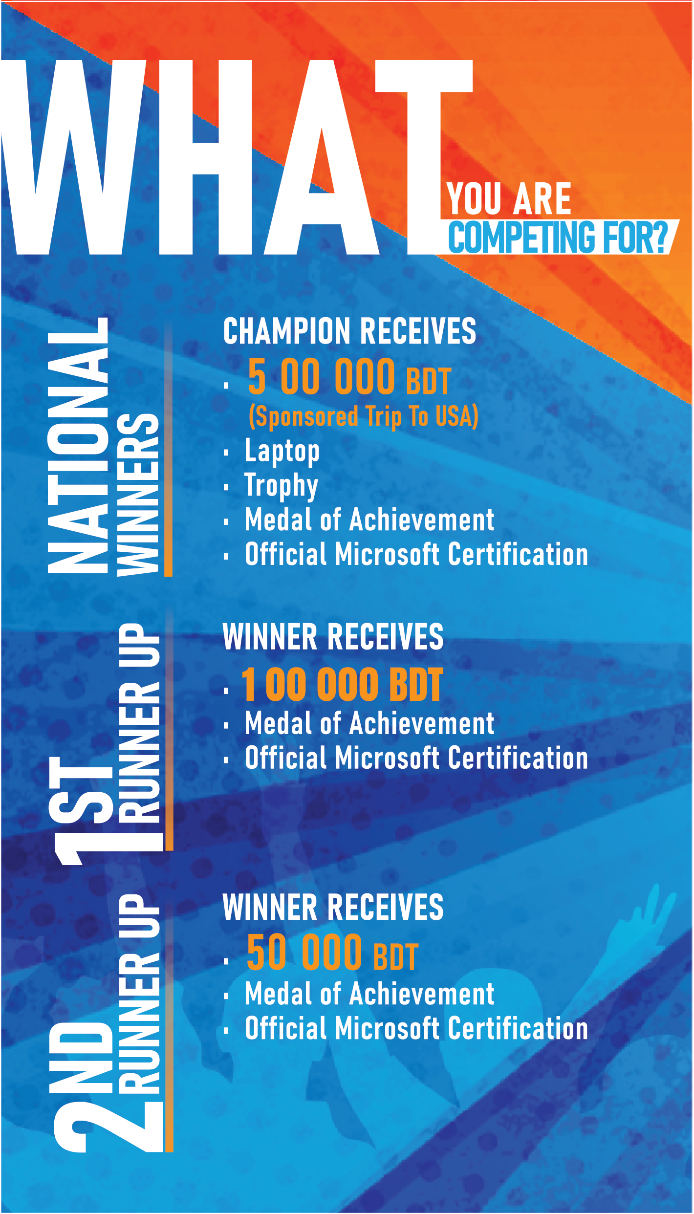- National Champions must represent Bangladesh at the Microsoft Office Specialist World Championship in the USA (dates to be announced).